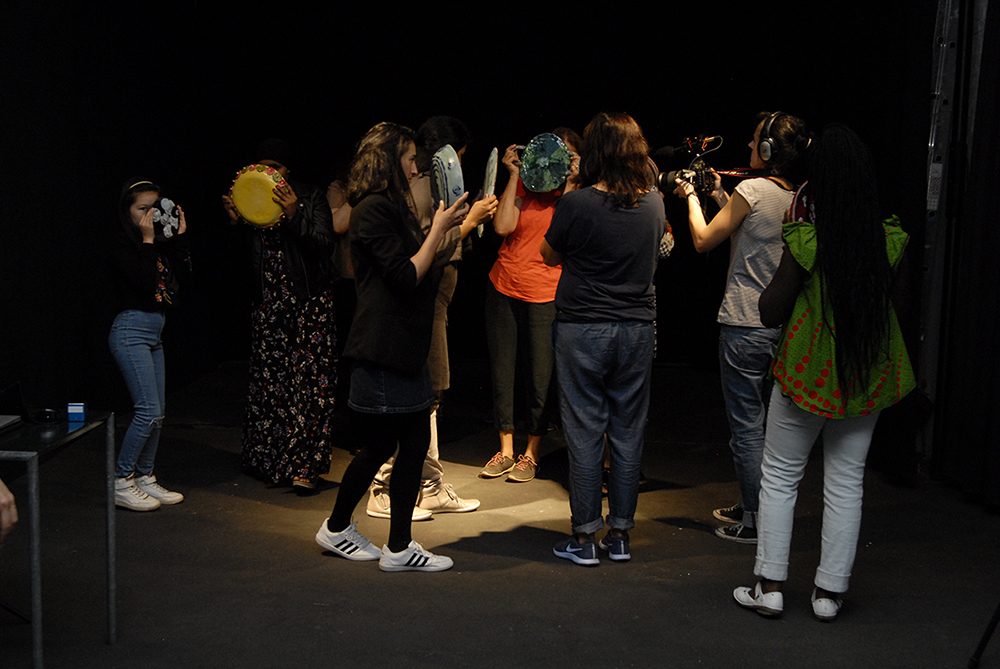 Circle of Looks by Adwoa Adjei, Carol Pilars de Pilar, Thyra Schmidt and Anne Schülke showed autobiographical texts and images from the summer of 2018: drawings, watercolors, an artist's book, an experimental video and a project documentation. The material was created in collaboration with women from Bangladesh, Germany, Ghana, Iran, Morocco, Pakistan, Romania, Somalia and Chechnya.