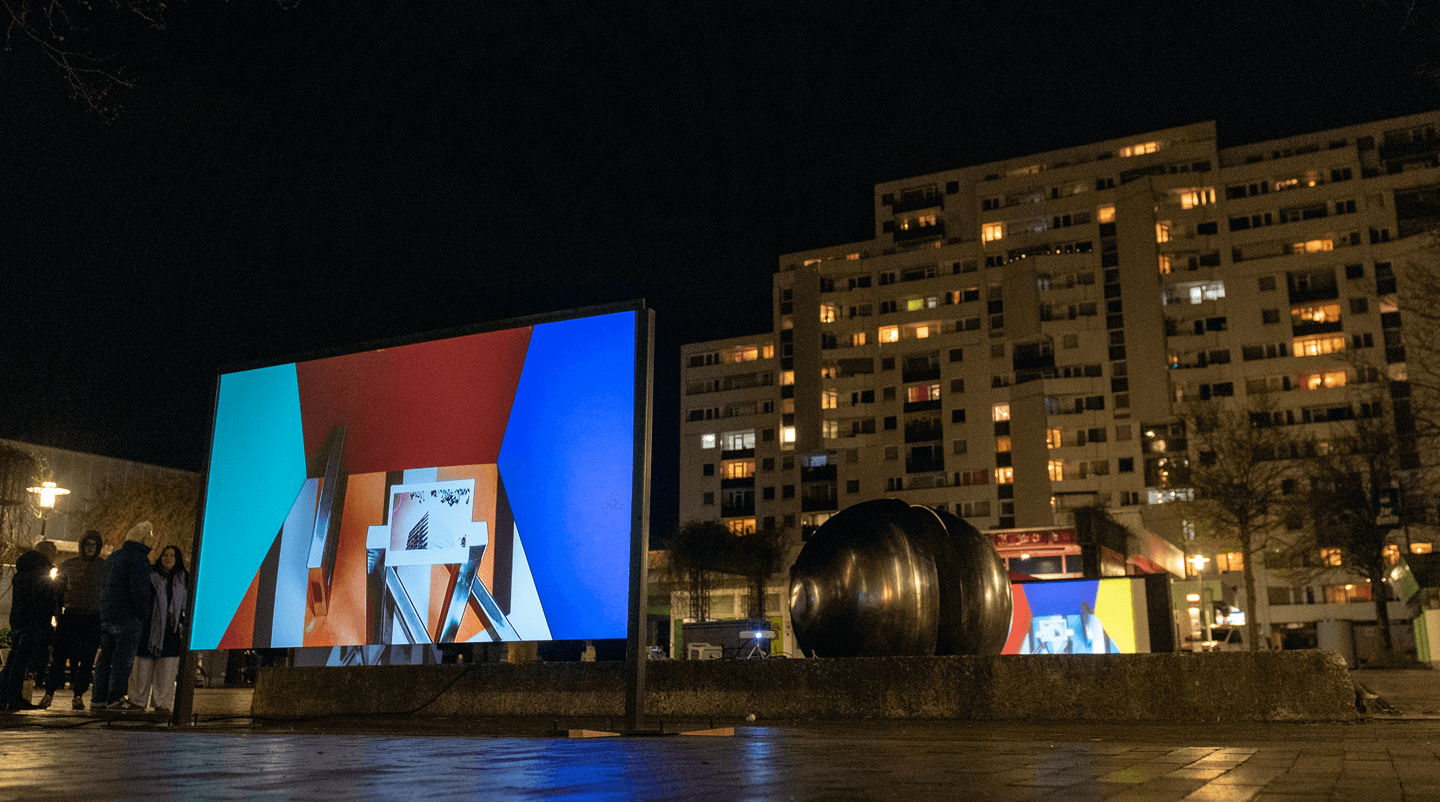 On April 2, 2022 a projection of "Westtangente" took place on Berliner Platz in Ratingen-West after sunset.